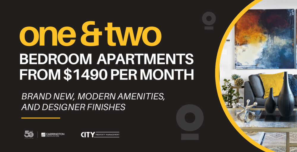 Now Renting brand new, modern apartments in Sherwood Park, Alberta! Built by local developer for 50 years, Carrington Communities. One and two bedroom, pet-friendly apartments are available for rent.1 bedroom/1 bathroom start at $1490 per month and 2 bedroom/2 bathroom start at $1680/month. Includes heat & water! Suite Features:Attractive, professionally designed interior finishing packages in each suiteAir Conditioning  and individually controlled heating in each suiteIN-SUITE laundryStainless steel appliances includes a dishwasherDesigner cabinets Quartz countertops throughoutLuxury Vinyl Plank flooringDesigner lighting and blind packageOversized patio doorsTELUS promotions availableBuilding Features:Air-conditioned Fitness CentreSocial Lounge fully equipped with a kitchenette, seating and TVOutdoor Courtyard featuring a gas firepitPet WashOn-floor storage availableSecured underground parking availableConvenient Visitor Parking Electric Vehicle chargingElevator service to all floorsSecured keyless entrance with the ability to control visitor access from your phoneVideo surveillance throughout for additional security SMART parcel delivery centreCONTACT US to view our selection. *Prices, incentives, availability, and specifications are subject to change. May not be available in all suites Images may not reflect actual suite finishes. E. & O.E.