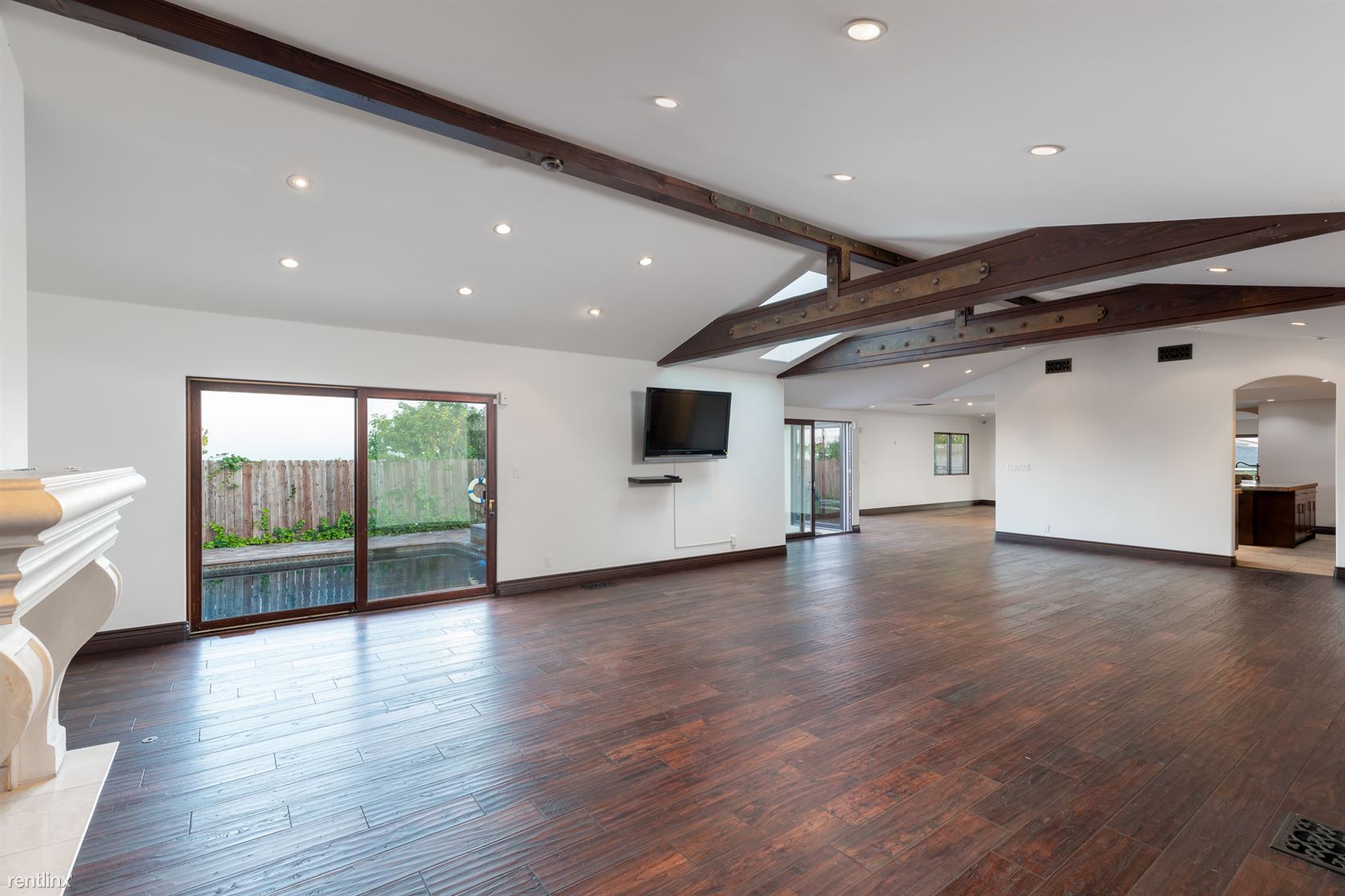 Welcome home to this expansive Contemporary Single Level Mediterranean home w/ secluded guest house (2 bed) + it's own private entry. This one of a kind home features 4 bed(plus office)4 baths w/ an opportunity to convert into a 5th bedroom if needed. Plenty of space in this very bright home & a 14,000+ sf lot w/pool - great for entertaining. Skylights & high ceilings are found throughout the property along with beautiful exposed wood beams. The custom home features a gourmet chefs kitchen w/oversized granite center island & luxury Viking Appliances, an office/lounge w/fireplace upon entry, wood floors, bar & and lovely stone bathrooms. There's privacy, pool, hot tub, & an incredible guest house w/its own kitchen, full bath, + balconies making it feel like it's a separate property. The guest house can be a great rumpus room from the kids, a private gym, gallery, music studio, maids quarters, etc. Located on one of the best streets, great neighbors, and beautiful views of Brentwood and beyond. Avail Mid to Late July. (RLNE5031675)